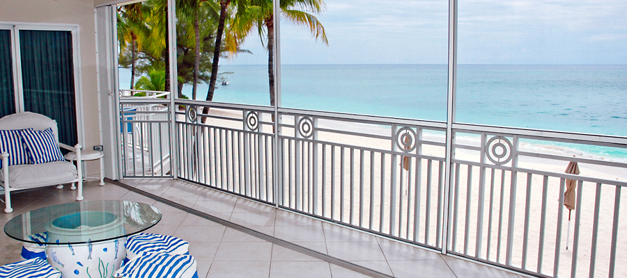 Condo 16 offers a spacious open air layout with panoramic views of Seven Mile Beach.